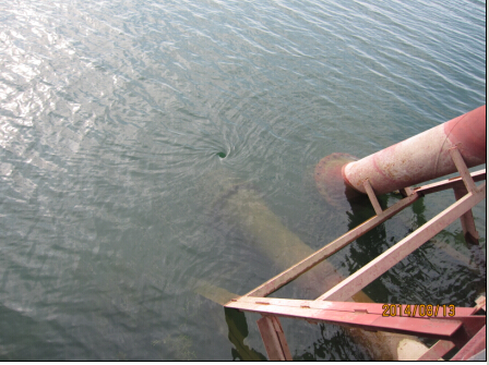 圖為漳河水位112.4米,已接近延伸叉管水位112米,取水水流打著回旋。