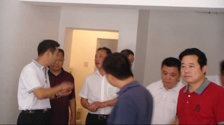 圖為省住建廳副廳長袁善謀在副市長蔣星華、市政府副秘書長陳保寧、市住建委主任楊劍、副主任張國忠等陪同下在荊門市供水物資公司檢查時情景。