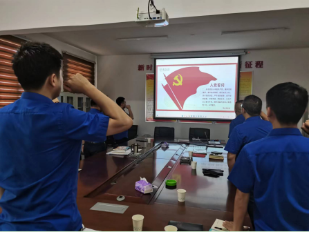 活動現(xiàn)場,全體黨員一起重溫入黨誓詞,感悟入黨初心。