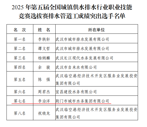 近日,荊門水務(wù)集團(tuán)成功獲評第五屆全國城鎮(zhèn)供水排水行業(yè)職業(yè)技能競賽湖北省選拔賽道德風(fēng)尚獎。集團(tuán)參賽選手不負(fù)眾望,取得佳績。詠泉公司付傳艷、余怡康榮獲個人優(yōu)秀獎,排水公司李治洋獲得第七名。